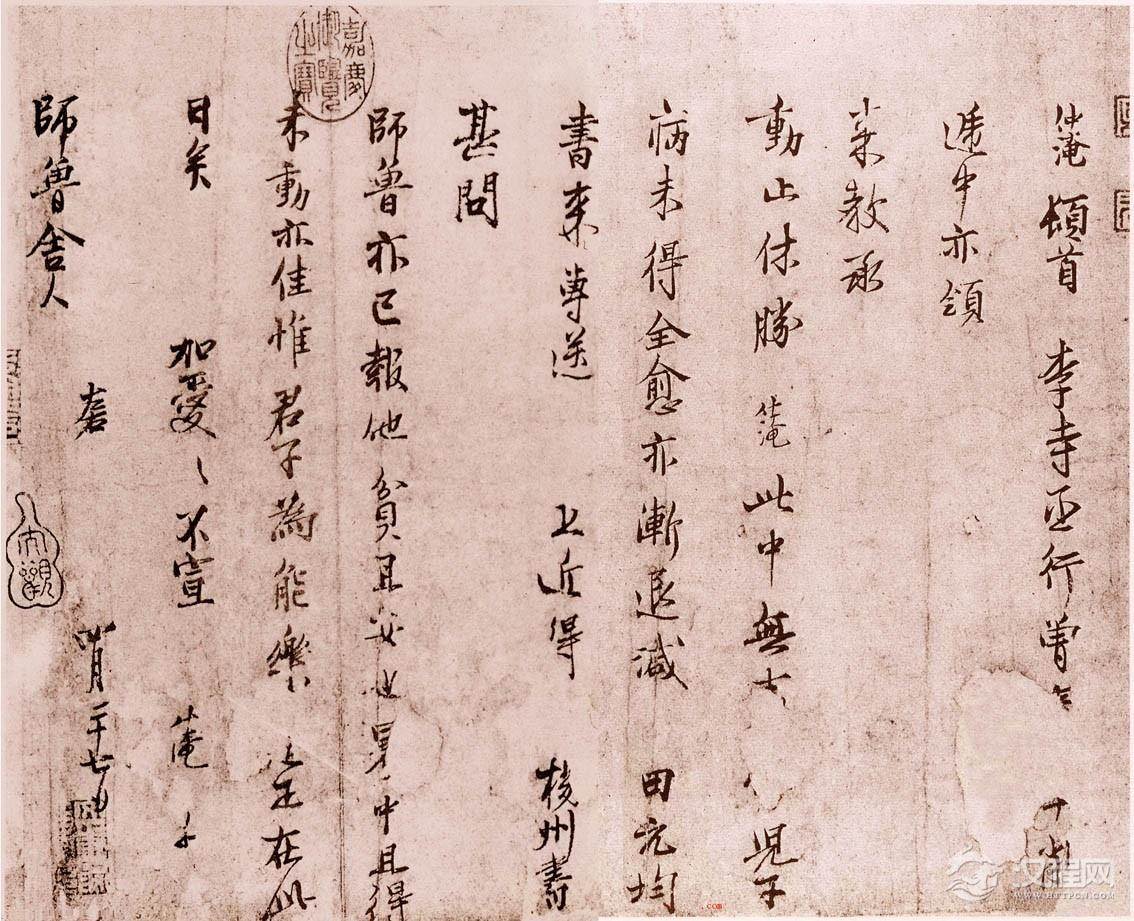 释文:仲淹顿首:李寺丞行,曾□□□□递中,亦领来教承动止休胜。仲淹此中无□□,儿了病未得全愈,亦渐退减。田元均书来,专送上。近得□扬州书,甚问师鲁,亦已报他贫已安也,暑中且得未动亦佳,惟君子为能乐□,正在此日矣。加爱加爱不宣。仲淹□师鲁舍人左右。四月二十七日。