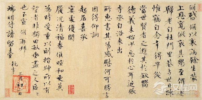 《致端明侍读留台執事尺牍》欧阳修书。纵25.9公分,横53.4公分。台北故宫博物院藏。
