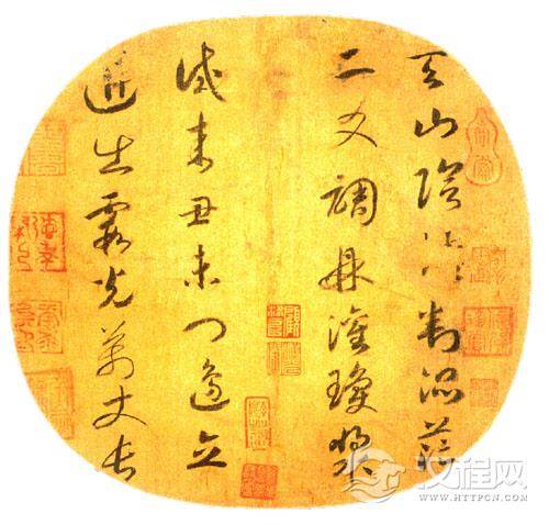 赵构《七绝天山诗》,纨扇,草书,绢本,23.3 x 24.3cm。美国纽约大都会博物院藏。