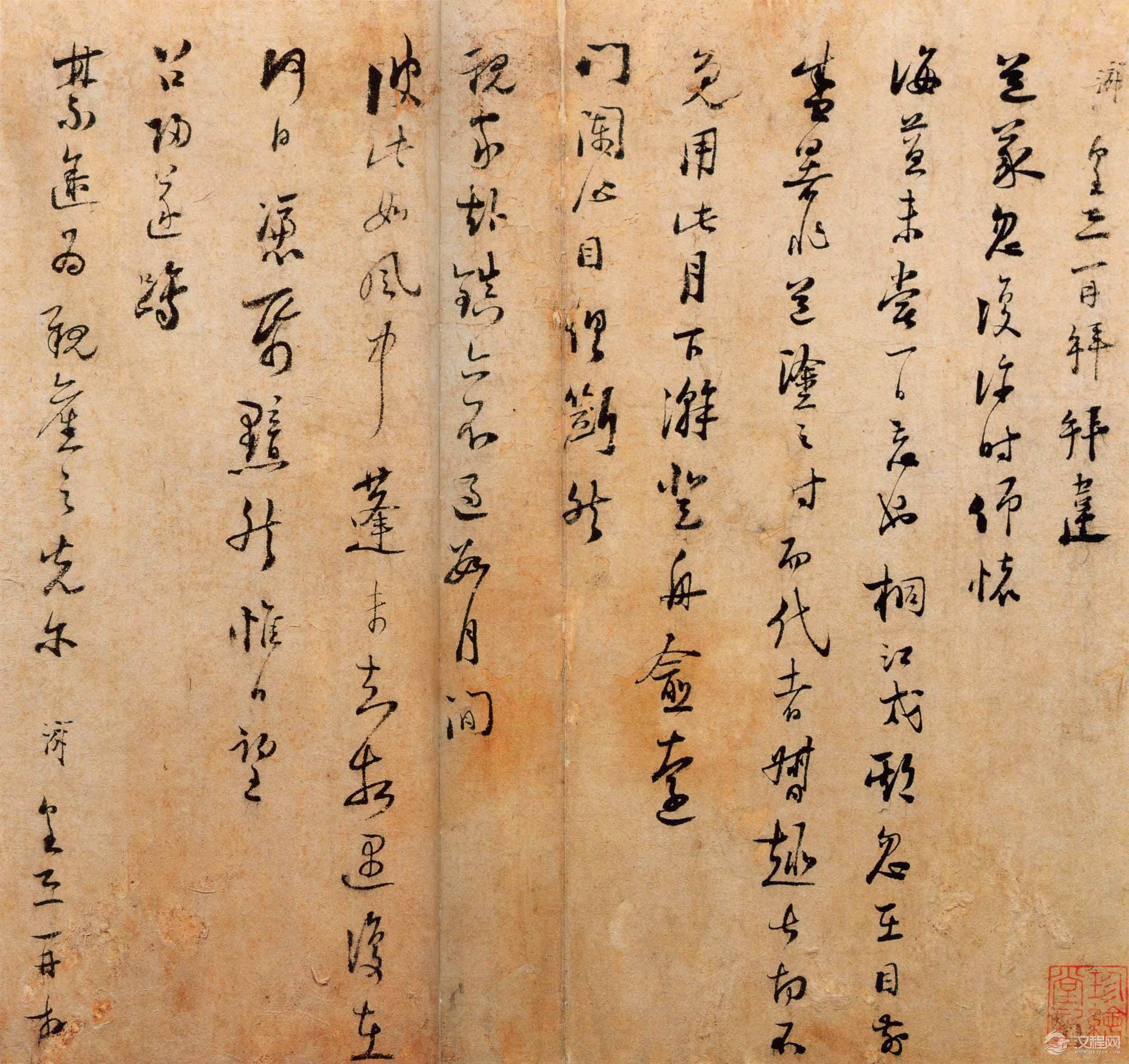 陆游《桐江帖》,纸本,行书,纵32.7厘米,横34.2厘米。清宫旧藏。