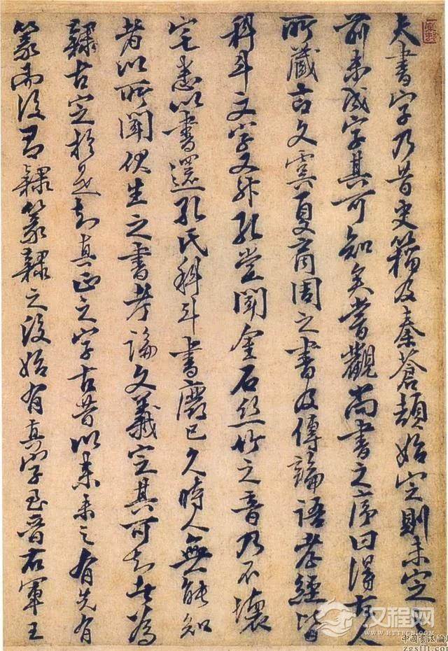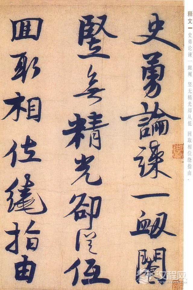 此幅作品为赵孟坚晚年之迹,笔力雄健,纵逸豪放,有黄庭坚书风。而结体瘦劲,中宫紧结,欹侧俯仰之势则师法米芾,自有标度,为其晚年代表作。