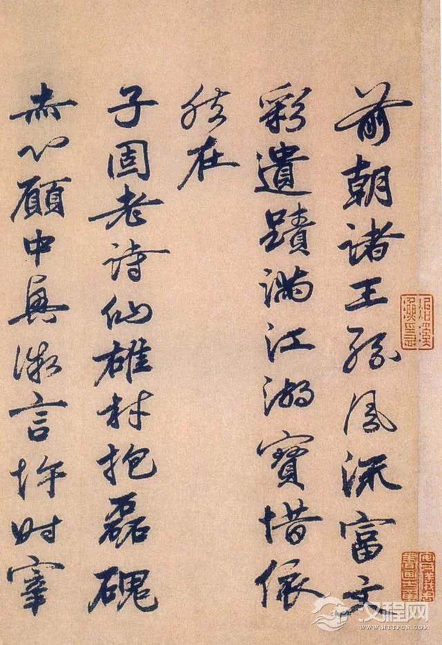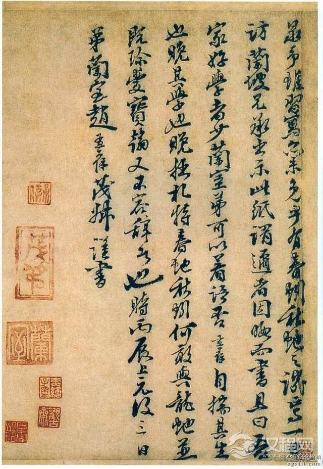 据说赵孟坚曾得书法珍品五字不损本兰亭,归家时,风作舟覆,其"被湿衣立浅水中,手持褉帖示人曰:”兰亭在此,余不足惜也。”因题八字于卷首云:'性命可轻,至宝是保。其酷嗜收藏到了几乎疯狂的地步。