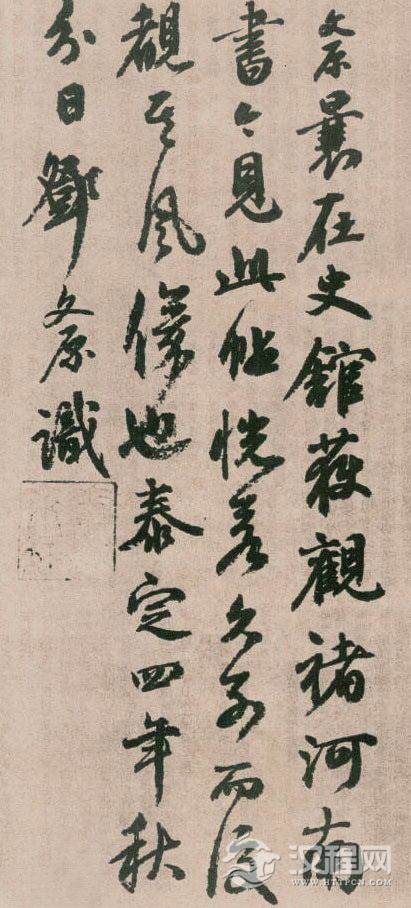 邓文原跋褚遂良《倪宽赞》后 书于泰定四年(1327)。纸本,纵24.6厘米,横19.9厘米。台北故宫博物院藏。