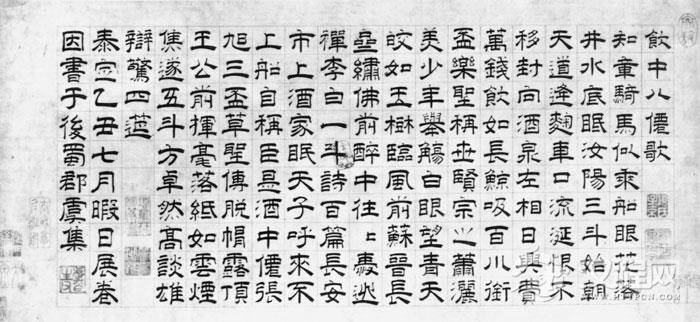 虞集《跋任仁发饮中八仙歌》,隶书,作于1325年,26.7cm×57.7cm,台北故宫博物院藏。