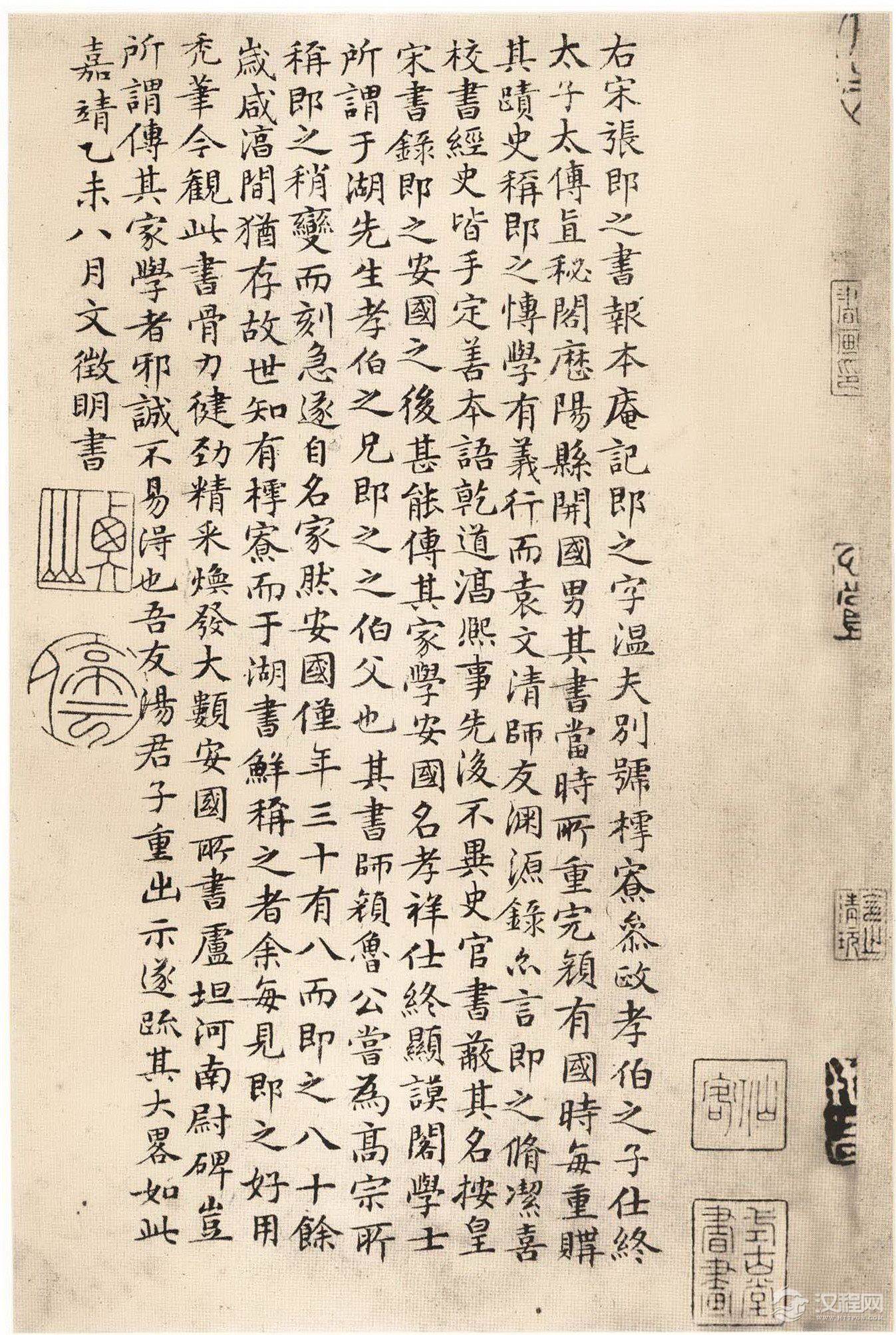 明 文徵明跋张即之《汪氏报本庵记》,楷书。辽宁省博物馆藏。