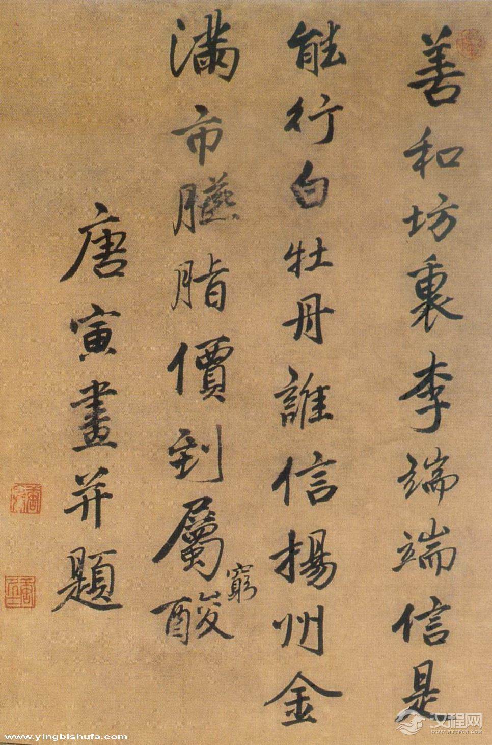 释文:善和坊里李端端,信是能行白牡丹,谁信扬州金满市,胭脂价到属穷酸。唐寅画并题。