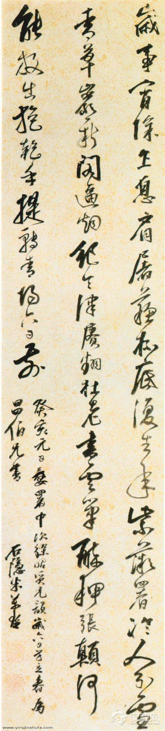米万钟《行书七律诗轴》,冷金笺,纵151.7厘米,横33.2厘米。上海博物馆藏。