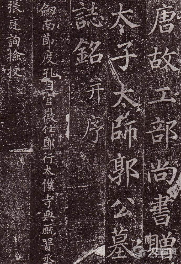颜真卿《郭已虚墓志》,楷书。1997年河南省偃师出土。据有关专家鉴定,这是当前我国发现的颜真卿最早的书法艺术作品。