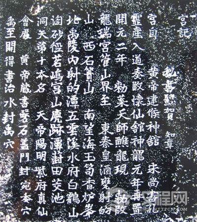 位于禹陵乡望仙桥村西300米。刻于宛委山南坡高4米、宽8.8米的“飞来石”上。飞来石形状突兀,其势欲倾,苔渍斑斑,少有锋棱。世传此石从安息飞来,上有索痕三条,故有“飞来石”之称。题刻高0.76米、宽0.69米。文12行,阴刻楷书,记龙瑞宫的沿革及其界止。唐代诗人贺知章撰并书,结字疏密匀称,端庄中寓俊秀,雄浑间透姿媚。旁有宋以来题刻20多处。