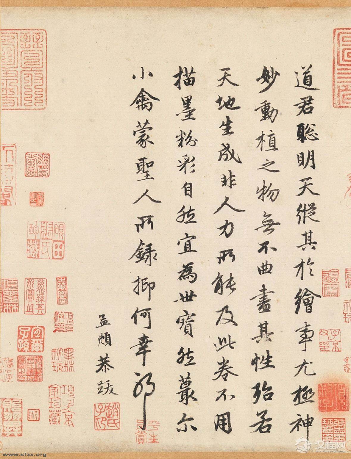 赵孟頫跋赵佶《竹禽图》,纵33.8厘米。美国大都会博物馆藏。