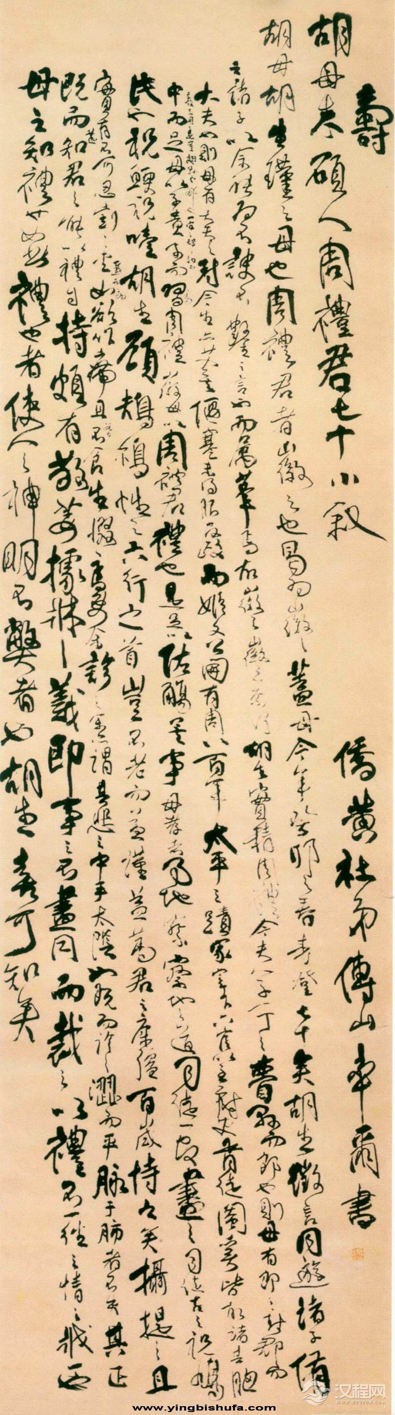 傅山《寿胡母朱硕人周礼君七十小叙》轴,北京市文物商店藏。