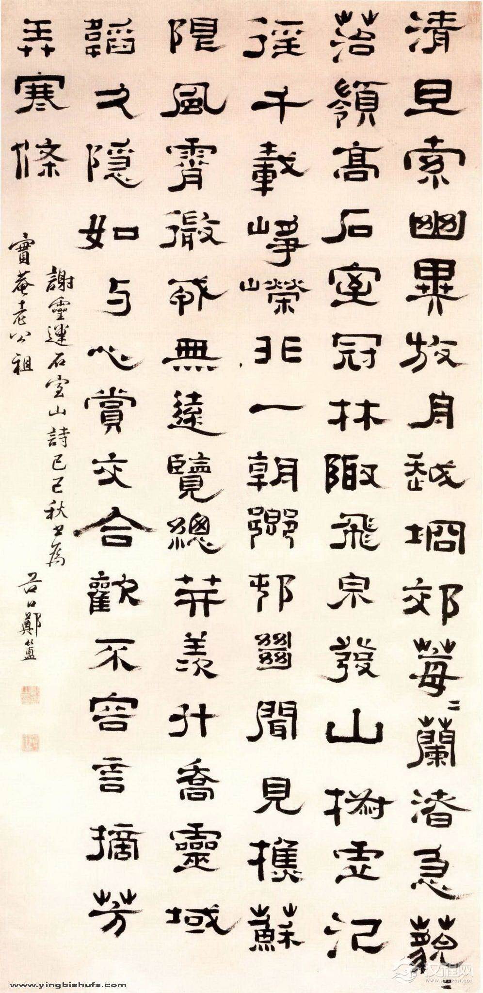 | 隶书五律册页 | 谢灵运诗轴 | 李白诗一首 | 隶书七言诗轴 | 隶书七律条幅 |