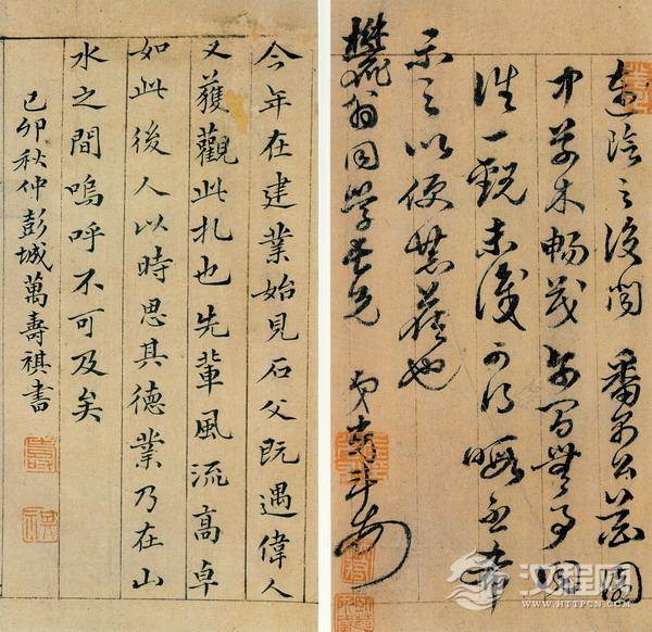 左光斗(1575-1625),字遗直、共之,号浮丘。安庆桐城(今属安徽)人。万历进士,授中书舍人,擢迁御史,奉命办理屯田事务,在北方大兴水利,垦水田,种水稻。泰昌元年(1620)他与杨涟等反对李选侍。又与杨涟同因弹劾魏忠贤而下诏狱、受酷刑死。此札与前杨涟札内容相近,都是意气相投朋友间相约聚会之事。而书法较杨涟字写得飞动多致,甚显才情。其笔势开阔而流畅,风流俊逸。后有明诗人、画家万寿祺(1603-1652)己卯(1639)的题跋,于左敬仰之情,犹对日月!亦可见其人在同世之影响。