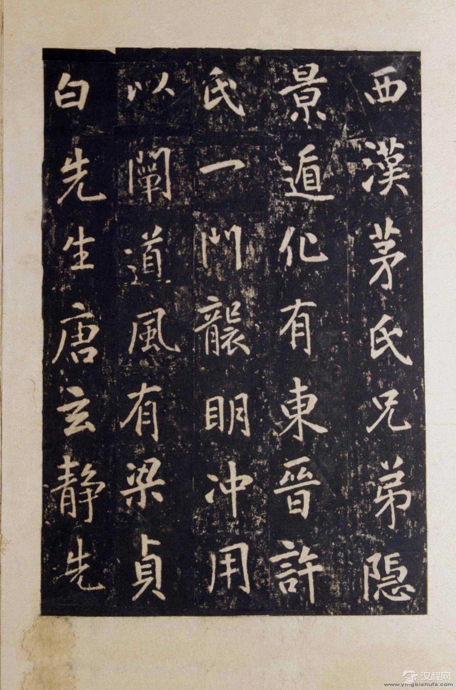 《李玄靖碑》记载了唐朝茅山此阳观道士李含光一生行实。李玄靖(683—769),字含光,本名弘,因避高宗太子李弘讳,故改为李姓。他是神仙道教上清派陶弘景五代传人,颇获玄宗嘉许,是当时朝野上下信徒最多的著名道士。李玄靖本人也精通书法,颜真卿在《李玄靖碑》中说他“颇工篆籀,而隶书尤妙”。在唐朝,佛道中人均极精书法,此为抄写经卷和游艺之需要,故而佛道二系书法蔚为大观,并与俗世书家多有往来。道家善书者还有如太清宫道士卢玄卿,权德舆《太宗飞白书答诏记》称“工为篆隶八分诸书,具其家法。”又有鱼又玄、梁元一,《宣和书谱》卷十谓:“(道士鱼又玄)工行书,得王羲之笔意,而清劲不堕世俗之习,飘然有仙风道骨,可以想见其人。“卷五评之曰:”(道士梁元一)尤喜翰墨,初慕钟、王楷法,久而出入规矩之外。然其法严,其气逸,其格清……观其书《太上内景经》,作小楷法而体兼丛善,乃知游方之外者,非世习之所能及也。”李、盧、鱼、梁四人,虽名高千载,深得后民敬仰,然元一纸片石留世,终令人扼腕(见朱关田著《中国书法史·隋唐五代卷》)。我们今天只能从柳识(字方明,工文章。)的文章中去一窥李玄靖之风采了。