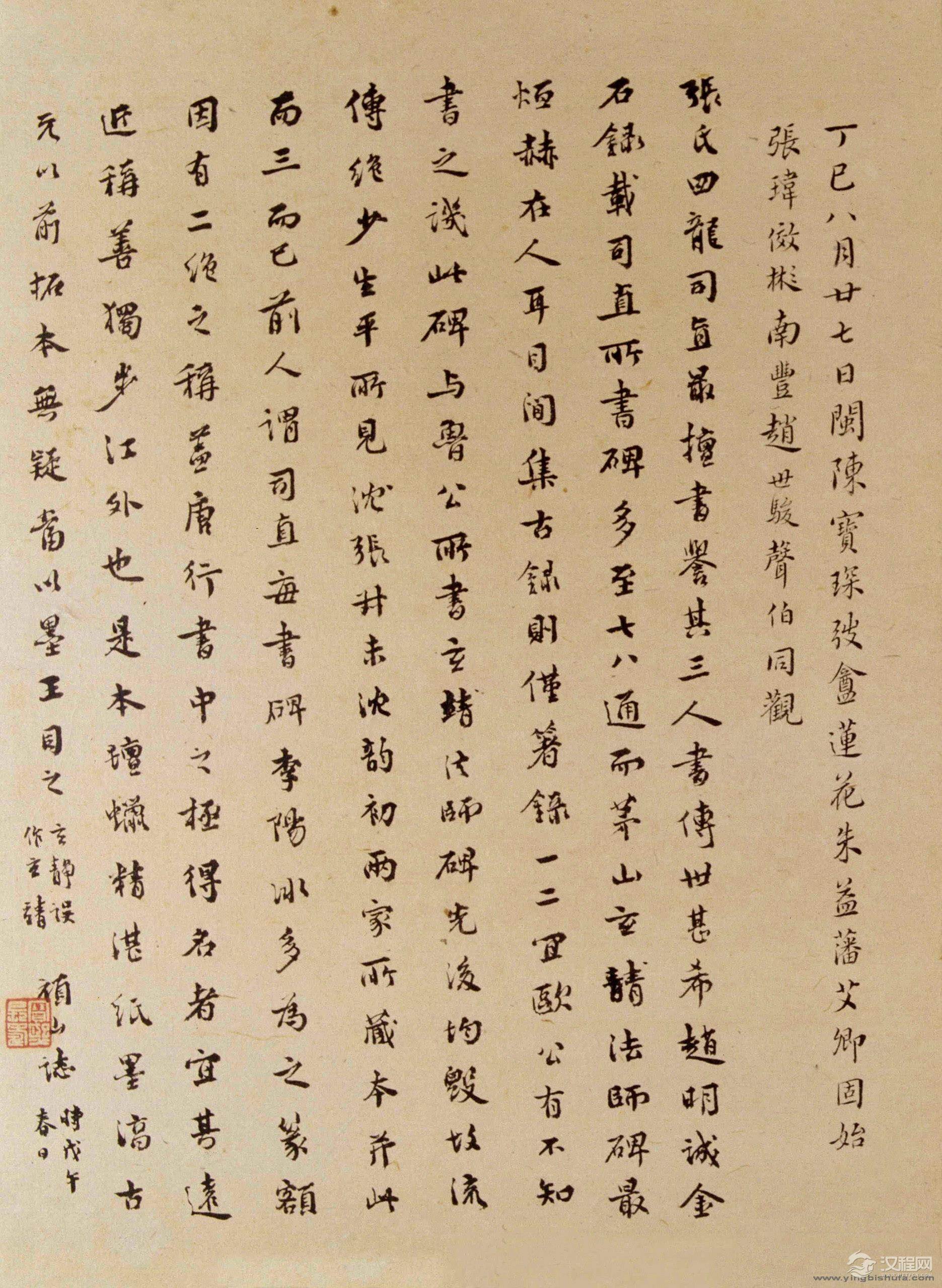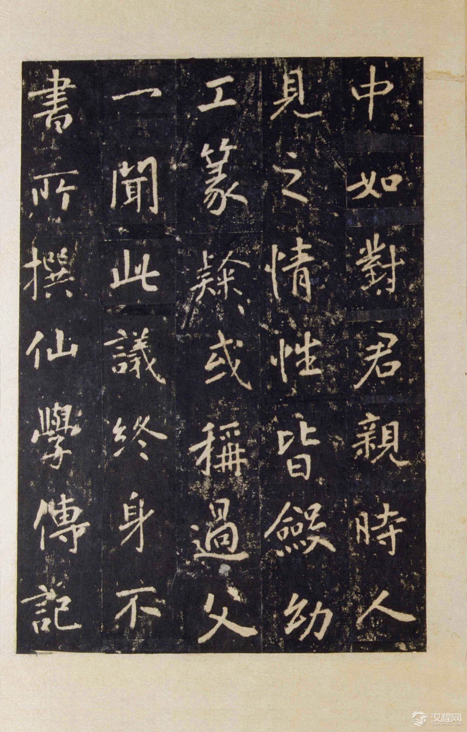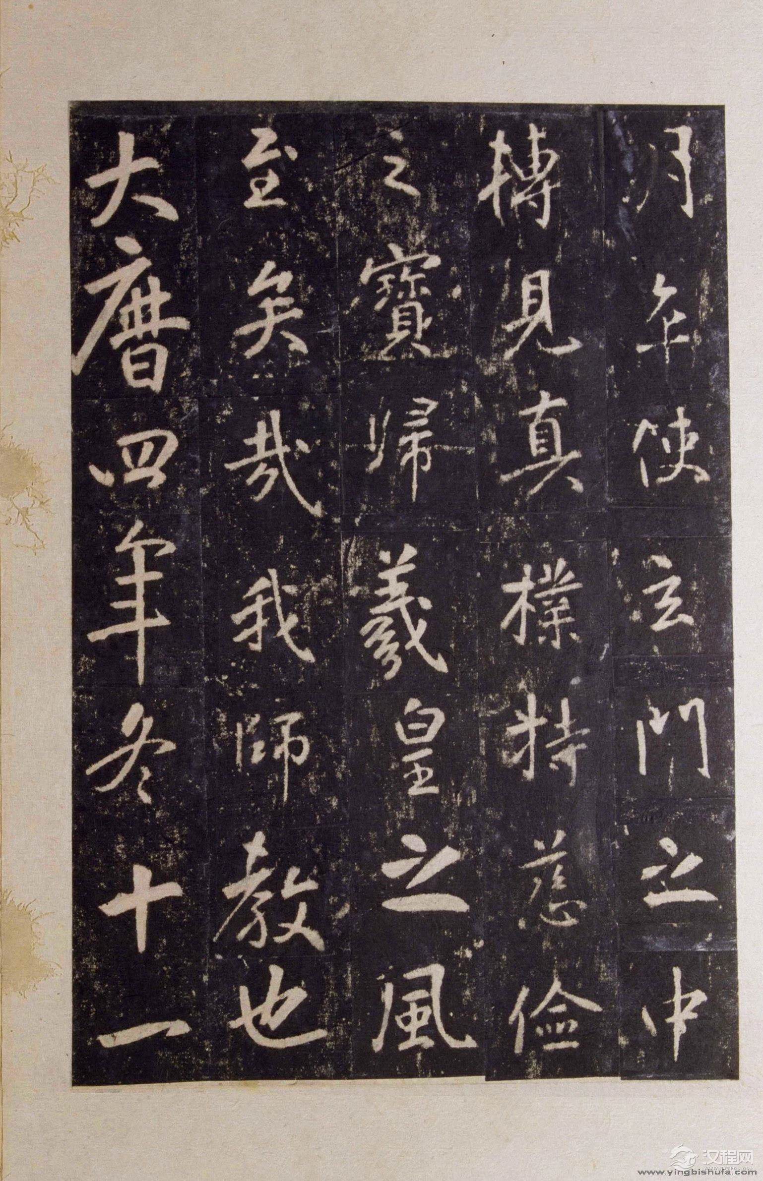 此碑笔意虽出自《圣教序》,然云其柔美三分,增其简劲三分。所谓干净利落,笔短意长,起落笔之处求之以方,以得遒逸之气,显得峻劲严整,古拙雄健,有“画能如金发之割净,白始如玉尺之量齐”(清笪重光《书筏》)之妙。体稍疏隽,曲折顿宕,方峻中寓圆柔,严整中现婉丽,甚有欧阳询遗意。此碑前半段写得拘谨而后半段则已放开,更有开合变化之妙。 唐代书法无论在笔意、笔法以及形体结构上都是一个大整理的时期,是对前朝繁冗芜杂的书法内在因素的再厘定,从楷法上说,欧阳询无论在字体、笔法、结构上都是对北碑正书的雅化和整饬化。同样,张从申也是从行书角度以《集王圣教序》做同样工作,但没有取得特别的成功。惟颜真卿从篆法入手来改造行书,别创一格,终于臻达中国行书的又一高峰,这只能说是书家在识见和取法上的不同导致了不同的结果。
