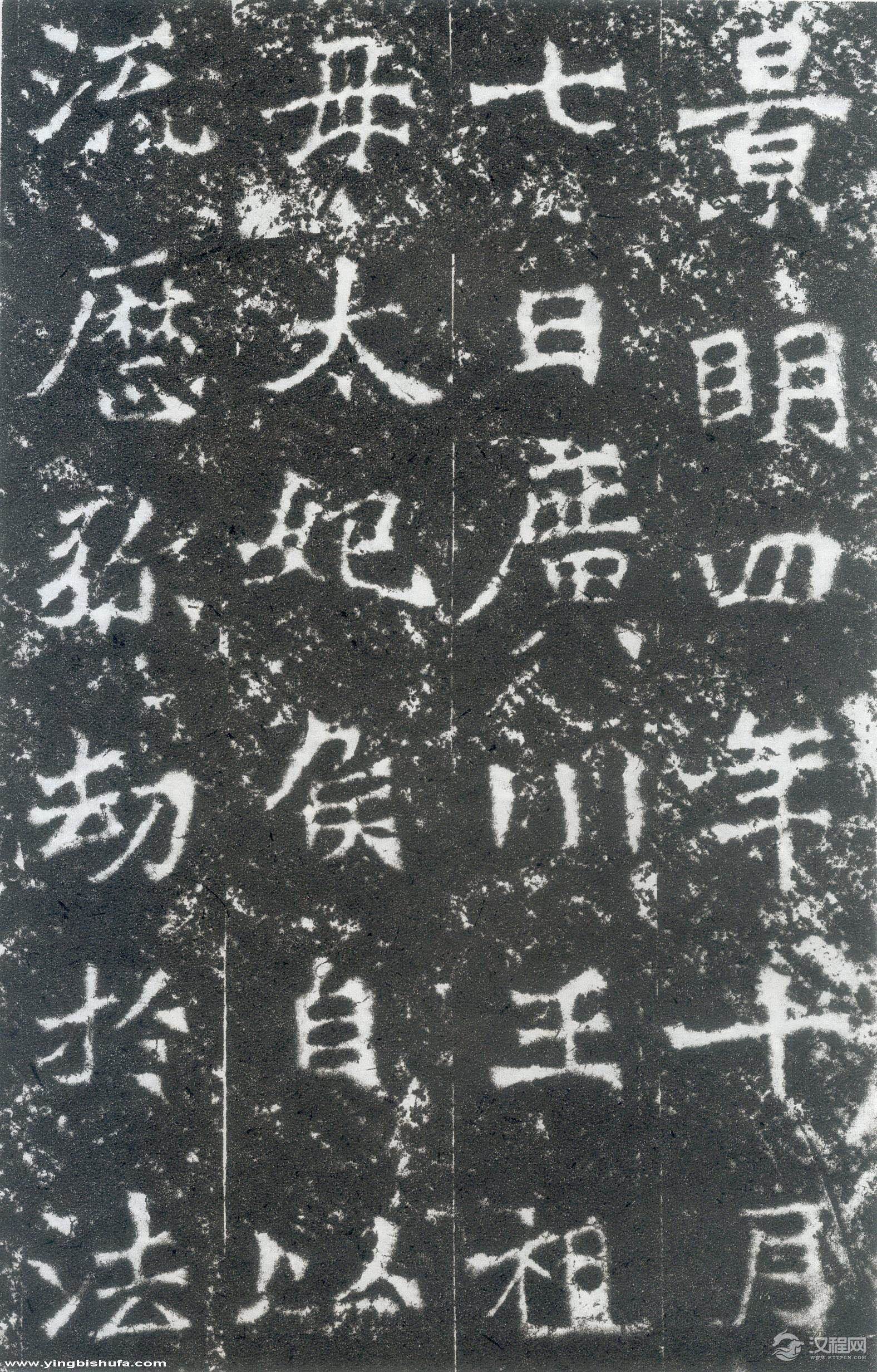 龙门二十品之《太妃侯造像题记》,全称《广川王祖母太妃侯造像题记》。景明四(503)年七月刻。广川王祖母太妃侯氏在为亡夫广川王贺兰汗造像的第二年,又为其幼孙,第三代广川王灵遵造弥勒像一躯,倾诉她“孤育幼孙,以绍蕃国”的“冰薄之心”。此碑也在古阳洞窟顶,距其为亡夫所作记碑大约1米左右,碑呈长方形,横卧式。正书,29行,前22行一行6字,字较大;后7行,一行4字,字较小。