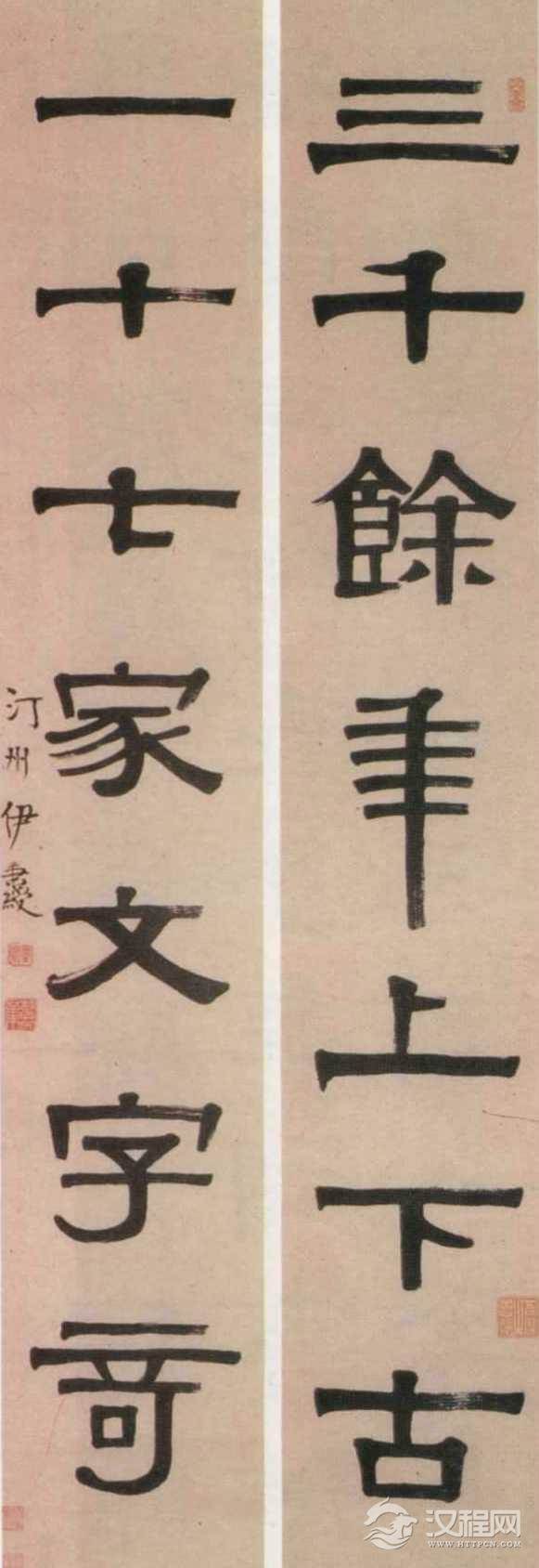 伊秉绶隶书联,三千余年上下古,一十七家文字奇。