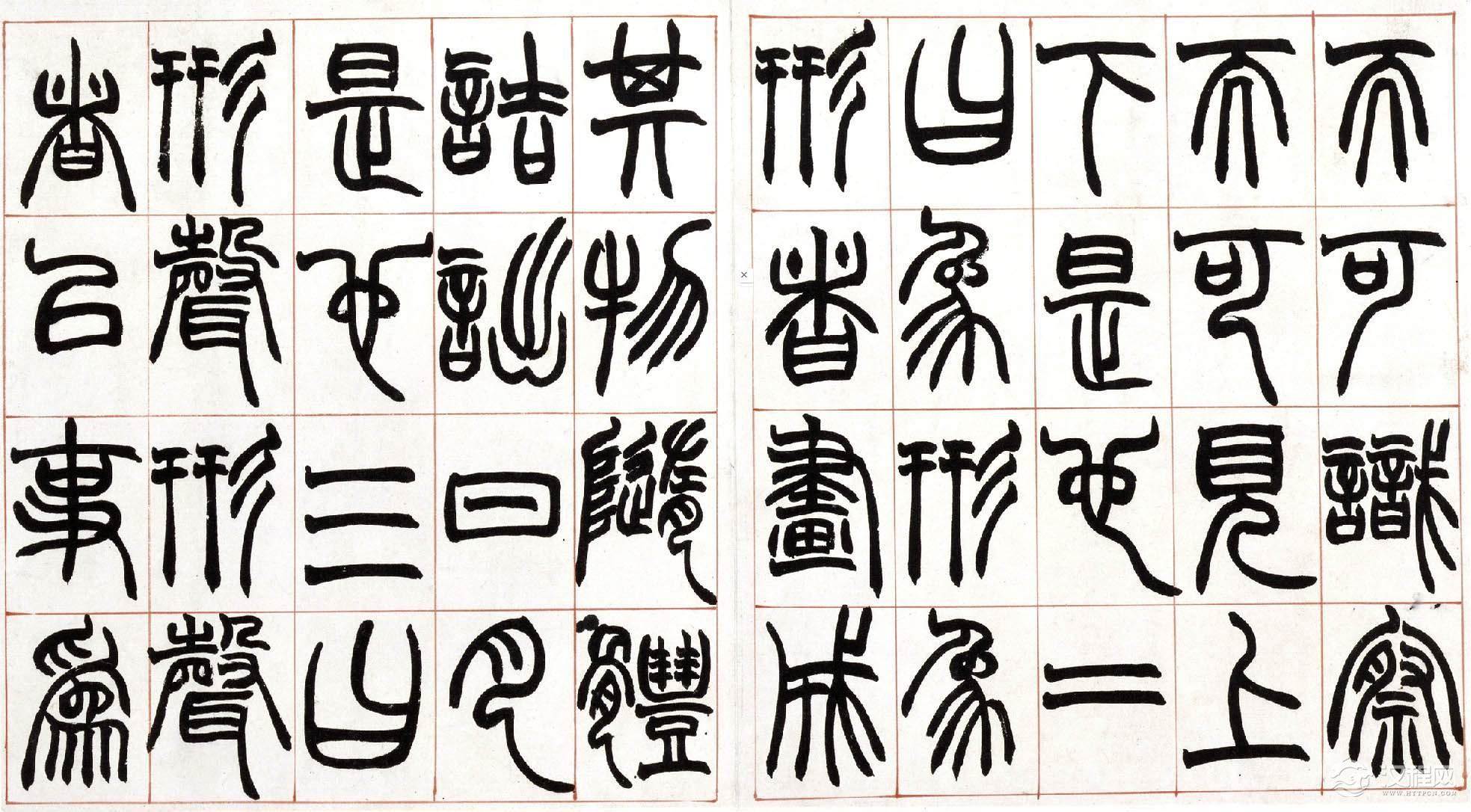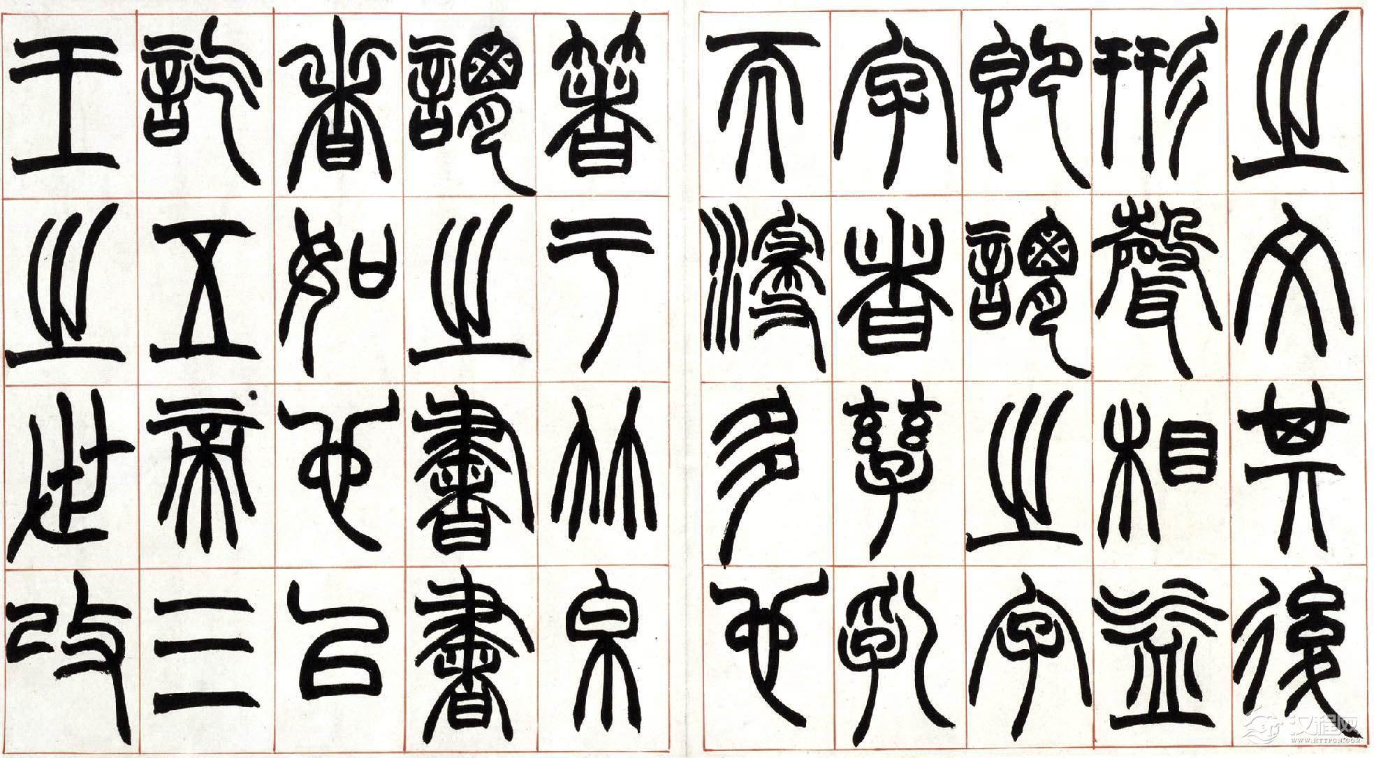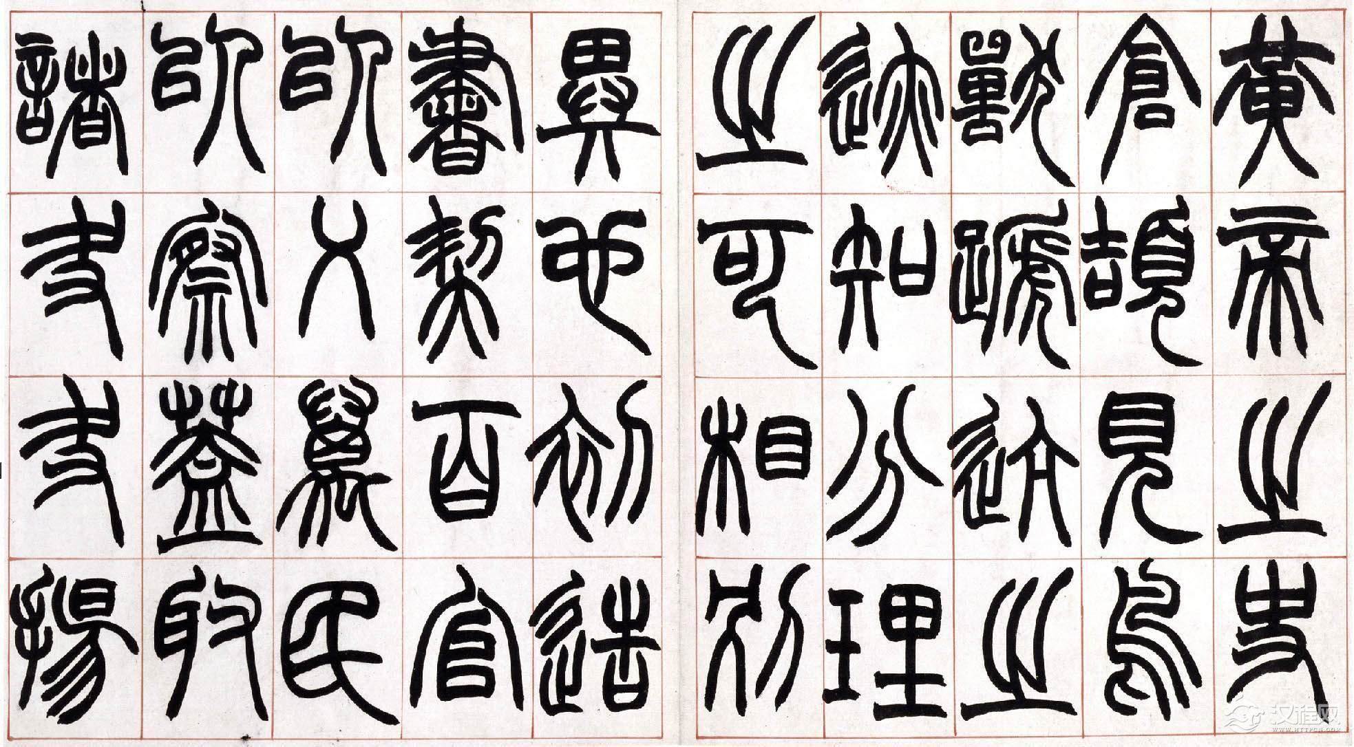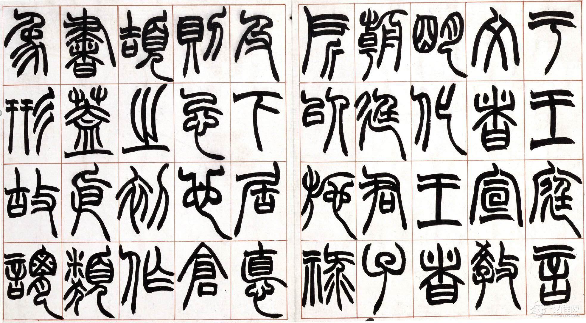 从赵之谦识语推测,此册当是为弟子习字用所书范本,上款"方壶"应为其弟子或爱其书者。此册书法结构谨严,篆法精丽,起讫之处未用藏锋,其意为使弟子易见笔法之踪痕,却获得了一种意外的效果,使之不同于一般篆书之圆润流美,自具特色。同时,此册笔力健劲,使转自如,将北碑书法融于篆书之中,也为赵氏书法之一大特色。本册具体书写时间不详,但从书法风格及为弟子书写范本的情况看,当为赵氏中年以后作品,是赵之谦具有代表性的篆书作品之一。